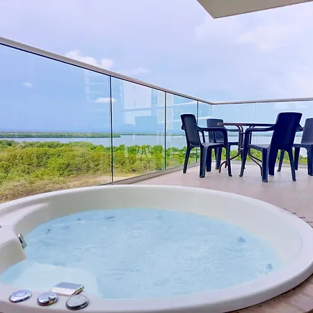 The 2-room Apartamento Con Jacuzzi Privado Cerca A Playa Azul Apartment Cartagena is situated 4.9 km from the grand mansion "Rafael Nunez Museum and House" and offers an outdoor swimming pool. Guests can benefit from a Jacuzzi while staying not very far from Success Express Las Americas.
